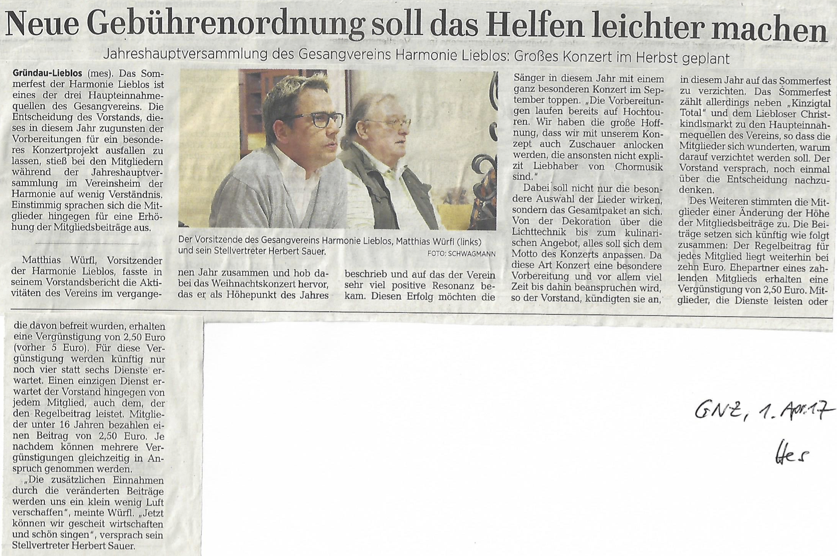 Beiträge unserer Jahreshauptversammlung 2017 in der Zeitung.