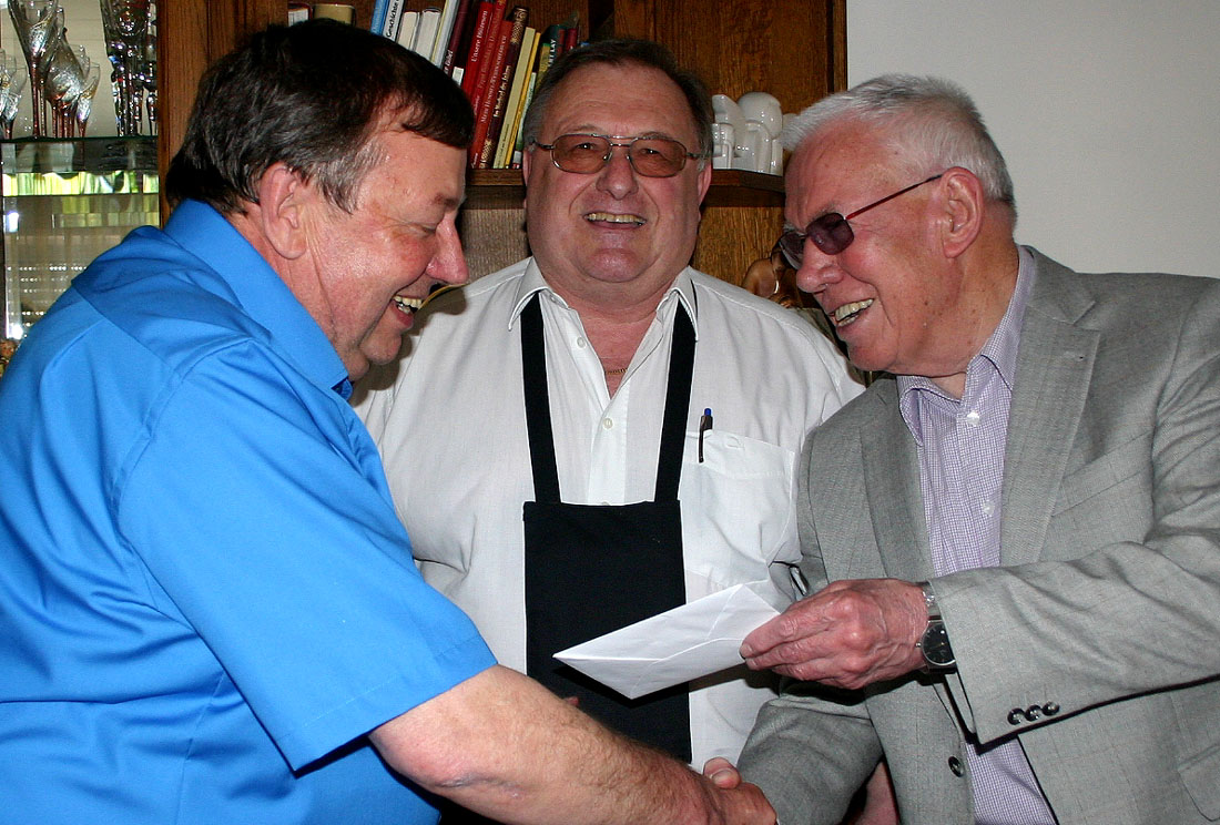 Herbert Sauer, Gerhard Sauer und Heinrich Treber besuchen den Jubilar in seiner Wohnung in Freigericht-Bernbach, überbringen die Glückwünsche des Vereins und überreichen dabei ein Präsent.