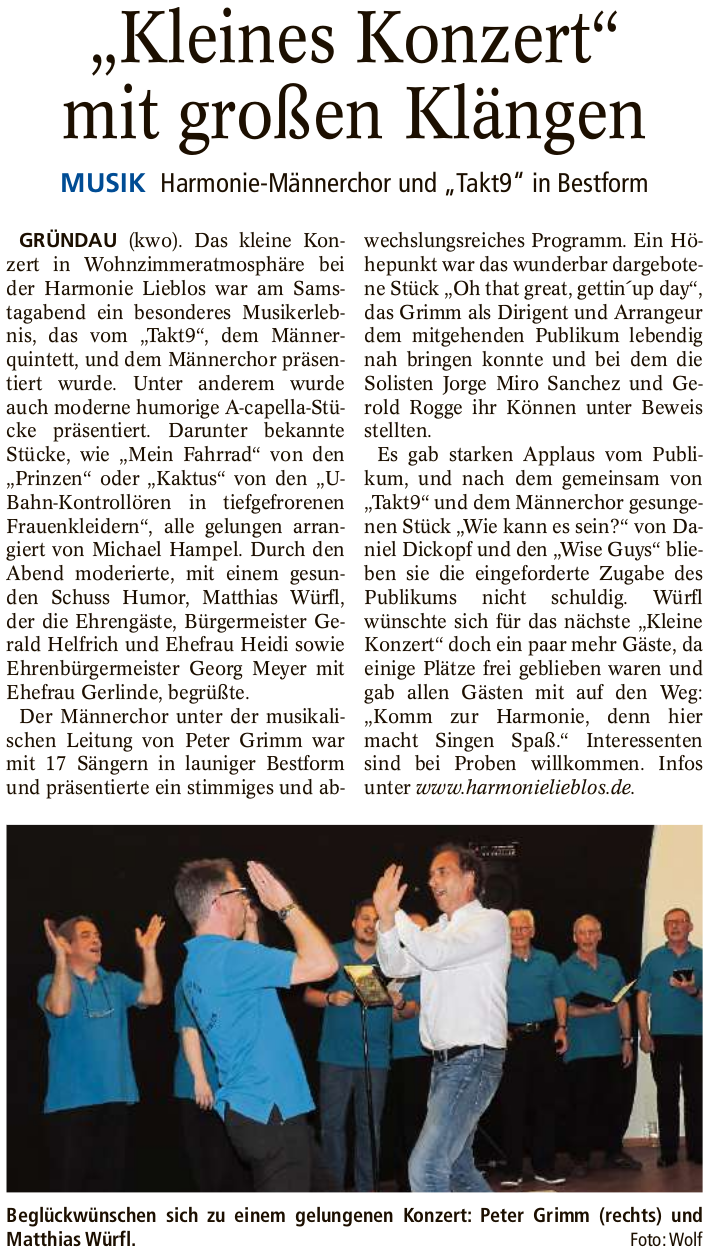 Online-Berichterstattung auf gnz.de: „Die besten Seiten des Männergesangs“