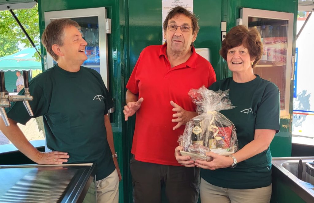 Unser langjähriges aktives Mitglied Norbert wurde bereits am 25. April 70 Jahre alt. Da er in letzter Zeit nicht an den Proben teilnahm, erfolgte die offizielle Gratulation im Rahmen der Veranstaltung „Gründau wird 50“. Wendy und Mathias Höpp gratulierten auf dem Getränkestand der Harmonie, wo sich unser Norbert wieder als hervorragender Zapfer erwies.