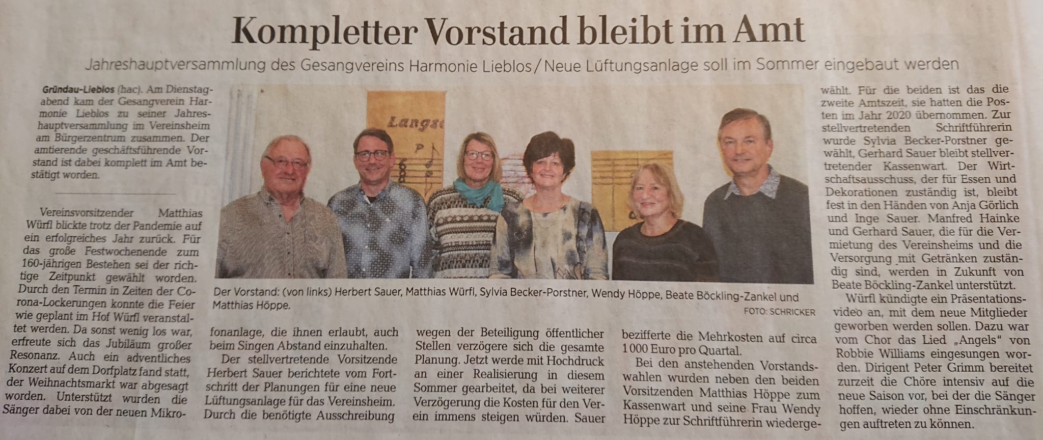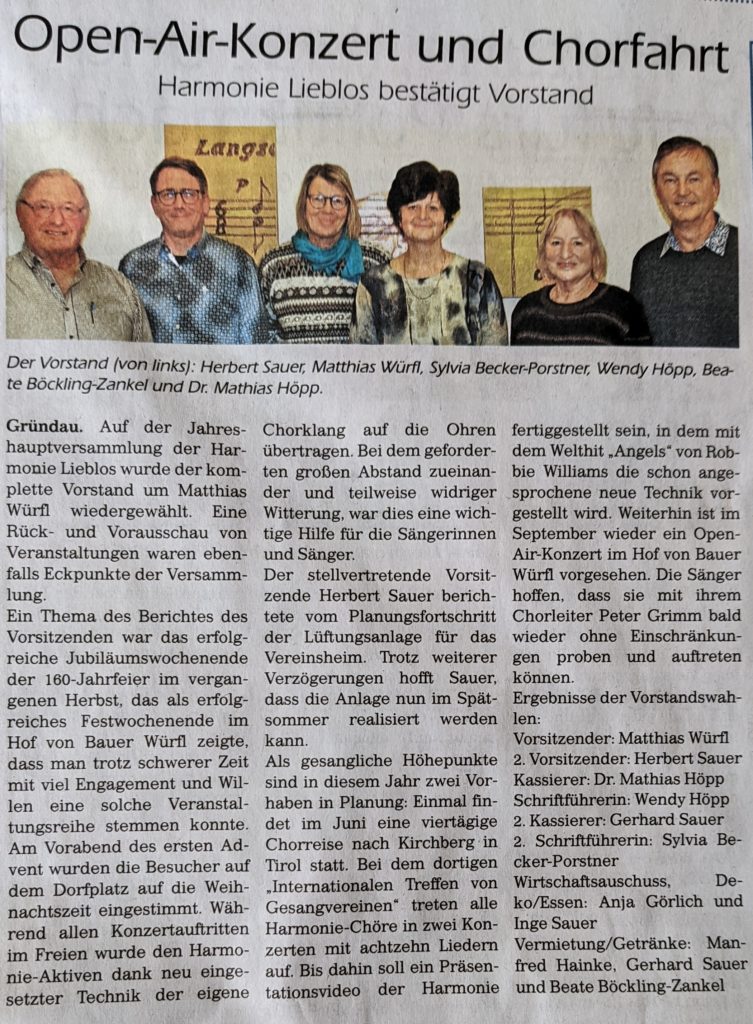Presseartikel GNZ und Bote zur Jahreshauptversammlung der Harmonie am 05. April 22