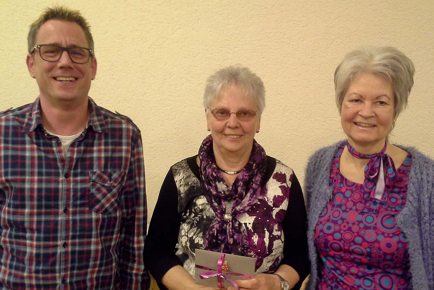 Am Rosenmontag haben wir mit dem GC unserer Renate zum 70. Geburtstag mit einem Ständchen und einem kleinen Geschenk gratuliert. Auf dem Bild ist neben Renate Chorsprecherin Ute und Vorsitzender Matthias.