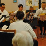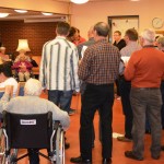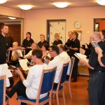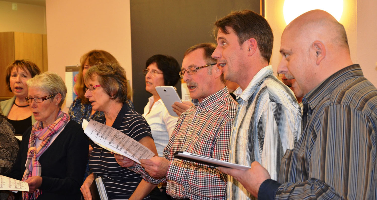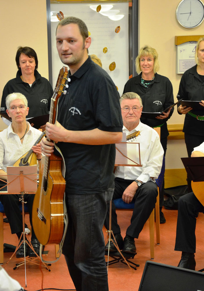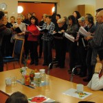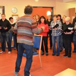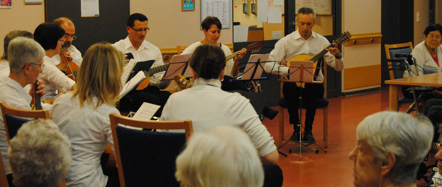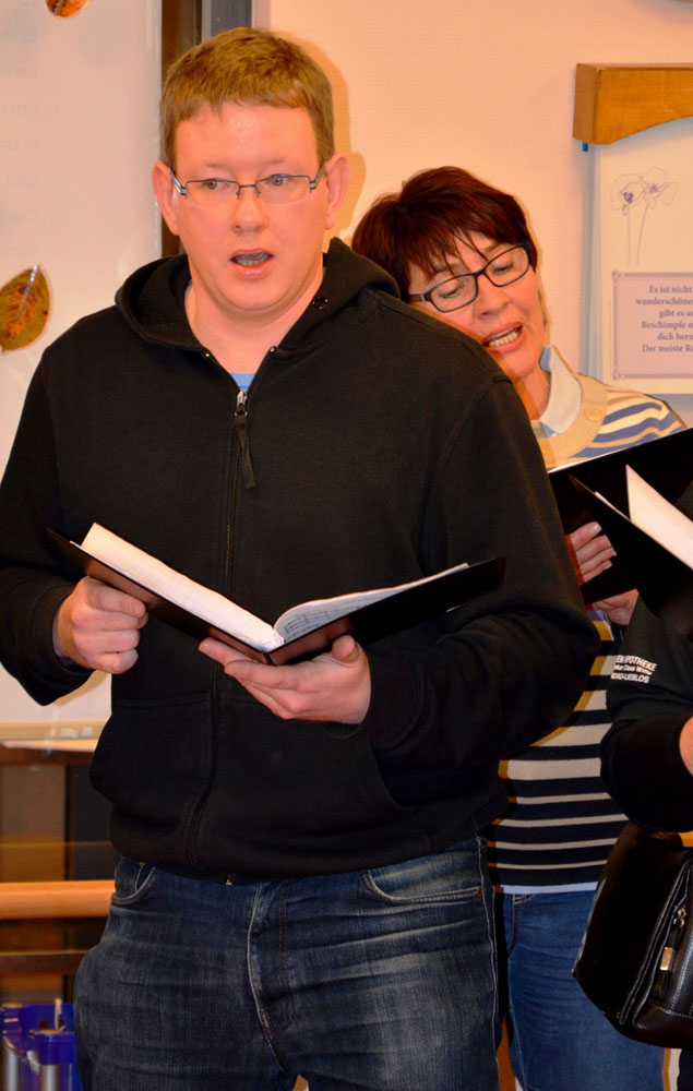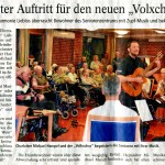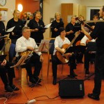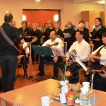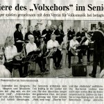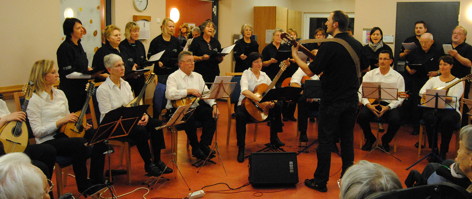 Heute waren gleich mehrere Gruppen aktiv, um den betagten Menschen im Seniorenzentrum mit einigen Vorträgen etwas Kurzweil zu bieten. Vor dem von Peter Grimm dirigierten „Gemischten Chor“, der mit „Weit, weit weg“, „Über’m See“ und dem „Halleluja“ einen fulminanten Abschluss bot, fand der Premierenauftritt des vor wenigen Monaten neu gegründeten „Volxchores“ große Beachtung. Die Aktiven, die sich aus Musikern des „Vereins für Volksmusik“ und aus Sängerinnen und Sängern der „Harmonie“ zusammensetzen, werden von Michael Hampel geleitet. Sie konnten mit „Sag mir wo die Blumen sind“, „Griechischer Wein“ und „Gute Nacht Freunde“ auf Anhieb überzeugen. Vorher stimmten die Musikerinnen und Musiker des VfV mit einigen Liedern das dankbare Publikum auf die sich anschließenden Vorträge ein.