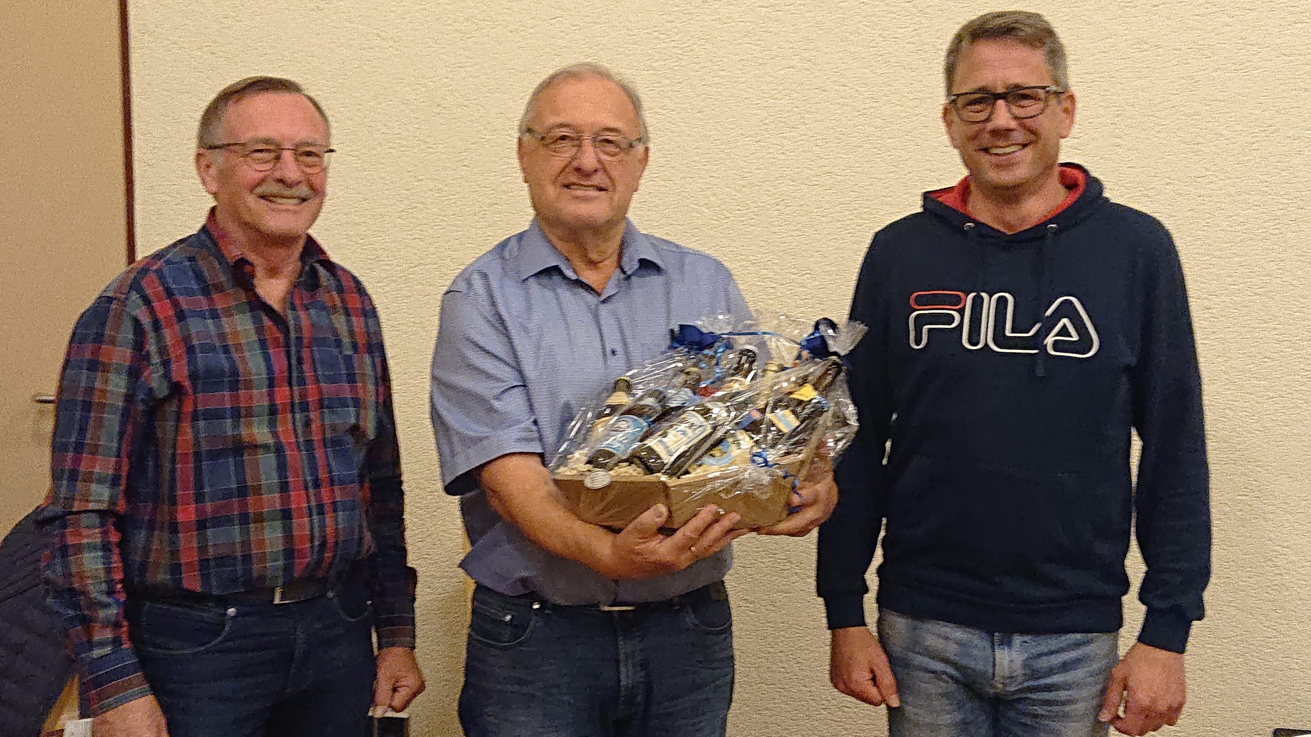 Unser langjähriges Vorstandsmitglied Herbert Sauer ließ es sich nicht nehmen, an seinem Geburtstag in die Gesangsstunde zu kommen. Matthias Würfl und Gerhard Sauer gratulierten im Namen des Vereins und überreichten einen Präsentkorb.