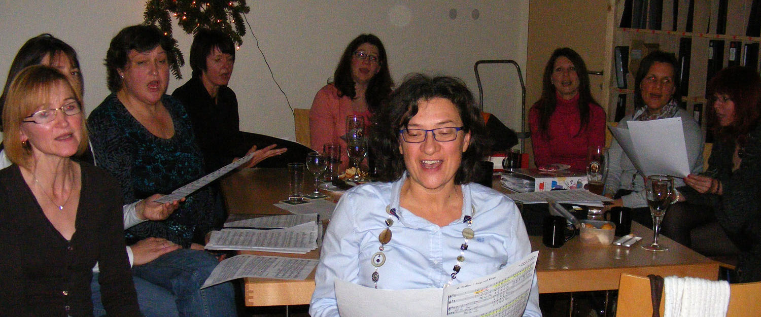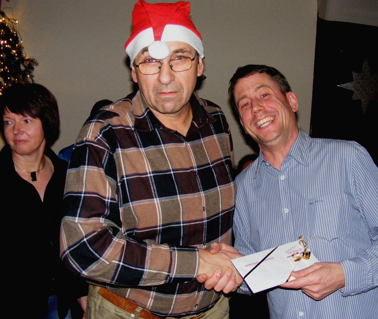 Der gemeinsame Jahresbschluß aller Chorsparten im weihnachtlich geschmückten Vereinsheim war wieder ein stimmungsvoller Abend. Neben Gedanken zum Jahresende und zum bevorstehenden Weihnachtsfest, trugen die Liedvorträge der Harmonie-Chöre wesentlich zum Gelingen bei. Der 1. Vorsitzende Matthias Würfl dankte den Aktiven für den guten Probenbesuch, dem Chorleiter Peter Grimm für die hervorragende Arbeit im vergangenen Jahr und das herausragende Konzert und reichte Geburtstagspräsente an Norbert Eggenweiler und Manfred Hainke nach.